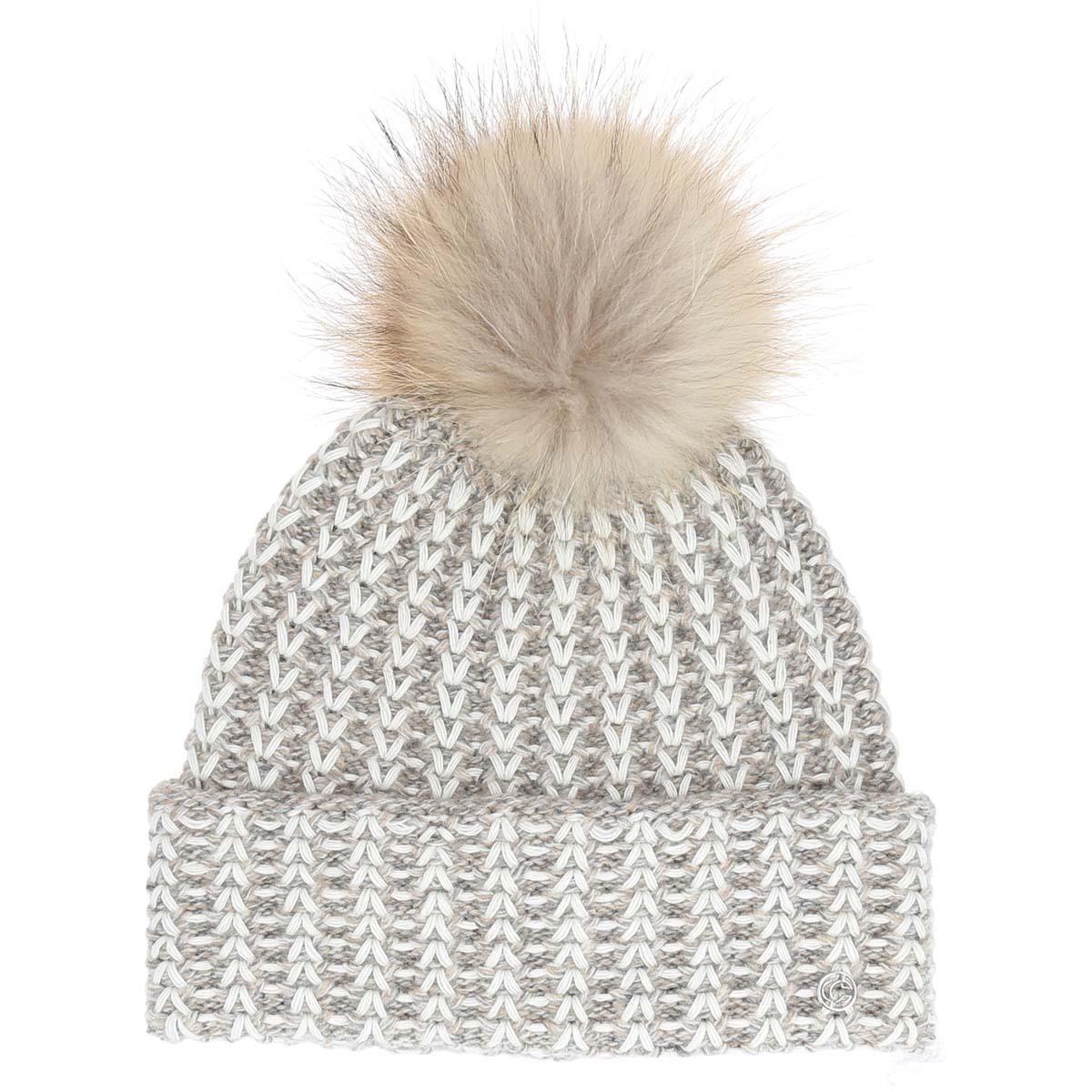 Extra-fine tweed merino handknit cuffed beanie with generous fit and tanuki fur pom