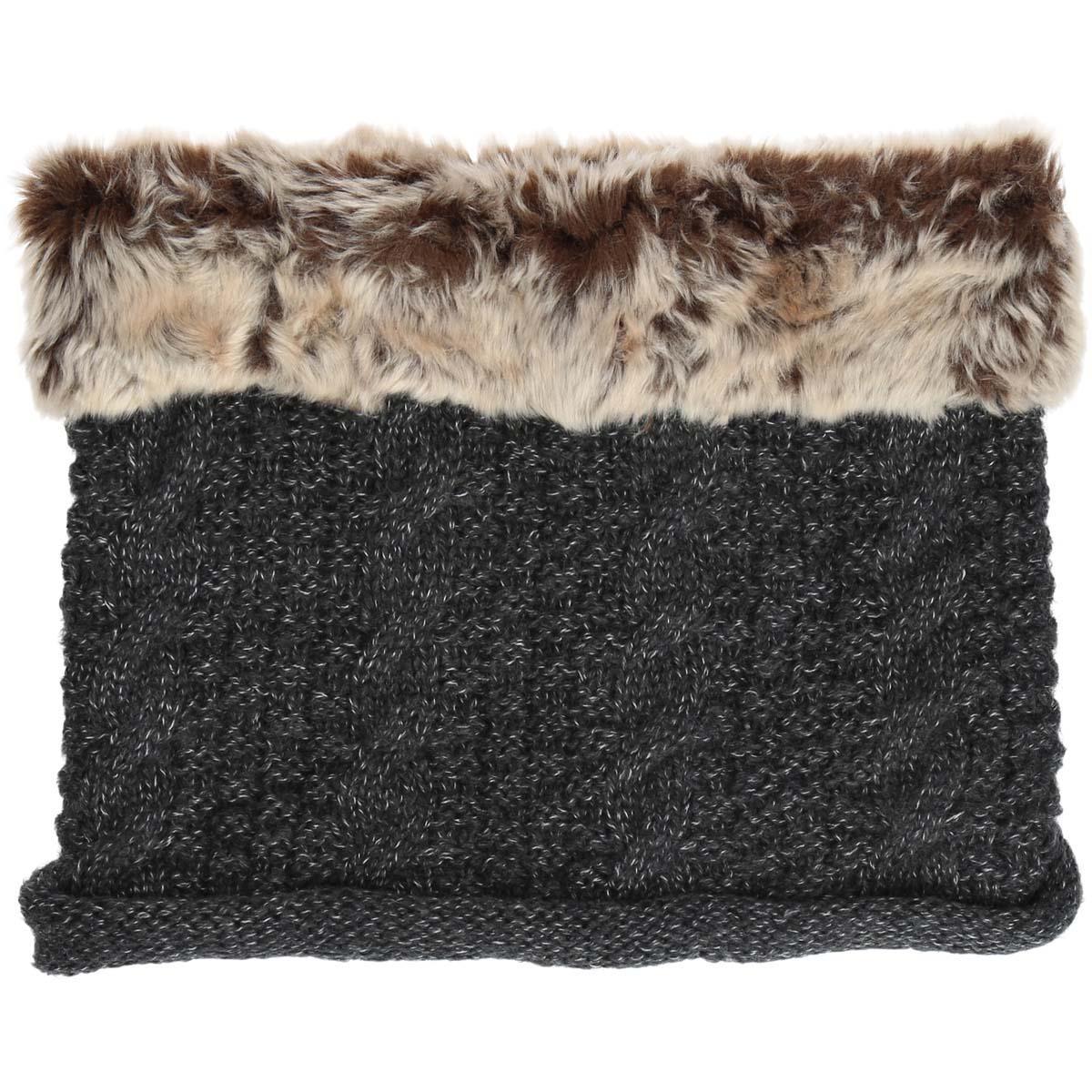 Mohair cabled neckwarmer with faux fur trim
