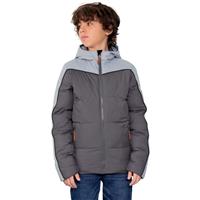 A junior boys 'ski coat with puffy, high loft panels and all the right ski features to stay warm on a cold day on the mountain.