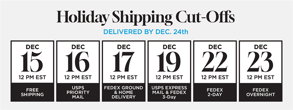 All orders must be placed before 12 PM EST via the services and dates listed below to be delivered in time for Christmas.