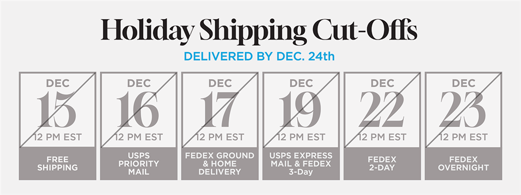 All orders must be placed before 12 PM EST via the services and dates listed below to be delivered in time for Christmas.
